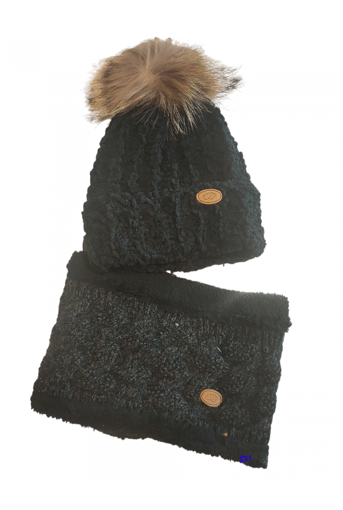 Tapacuello trenzado forrado en suave coralina. Pompón de pelo natural. Súper bonito