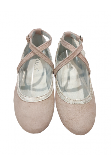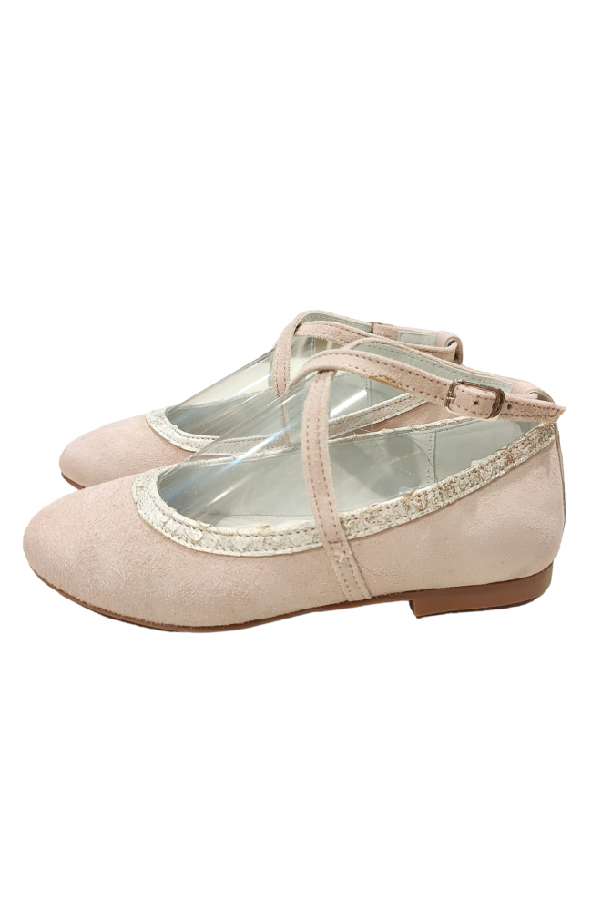 Precioso zapato cruzado fabricado en ante con vivo en piel.