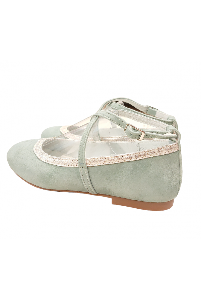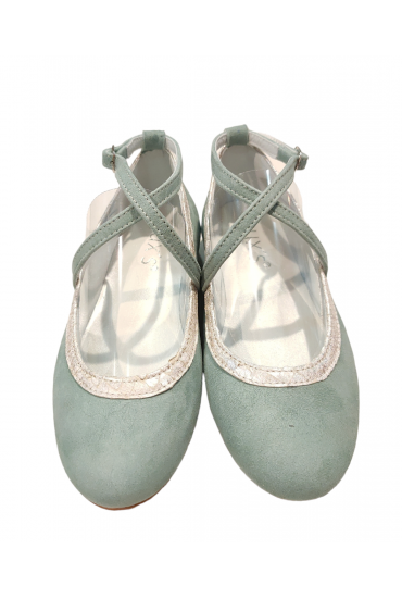 Zapato Comunión Cruzado Ante Verde Agua