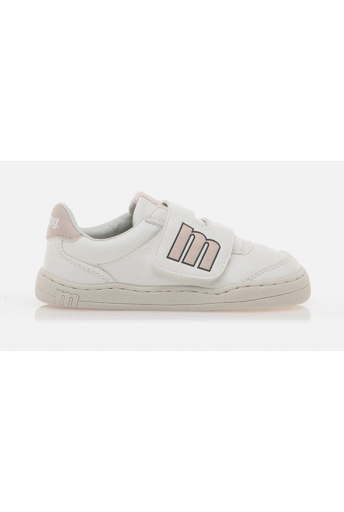 Zapatilla Free para niño, diseñada en color blanco. Nombre de la marca bordado en el lateral. Cierre de tira adhesiva. Se trata de un calzado minimalista que gracias a su puntera ancha, suela totalmente plana (cero drop) y flexibilidad, mejora la anatomía del pie y favorece una mejor posición del mismo. Además la puntera cosida asegura además la durabilidad y comodidad del producto. Con certificado VEGANO sellado por INESCOP, el cual garantiza que la naturaleza química principal del material no se corresponde con fibras de origen animal.