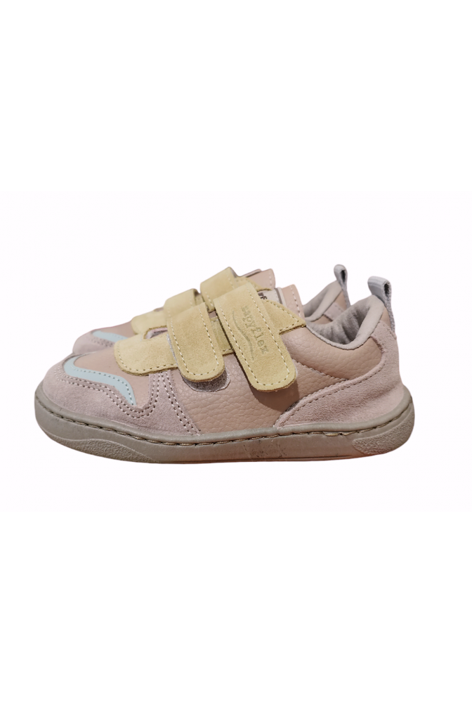 Preciosa deportiva zapyflex en tonos rosas con detalles en amarillo pastel. Piel súper blandita, suela flexible, puntera amplia que permite libre movimiento de los dedos. Sin contrafuerte. Plantilla extraíble lisa. Calzado respetuoso.