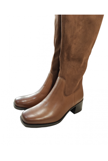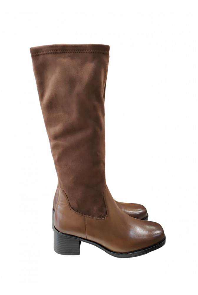 Espectacular bota alta fabricada en piel de gran calidad. Elástico antelina al tono para que ajuste perfectamente al ancho de cada pierna. Horma cuadrada muy confortable. Piso antideslizante y tacón cuadrado muy cómodo de 5 cm. Un básico imprescindible en tu armario esta temporada.