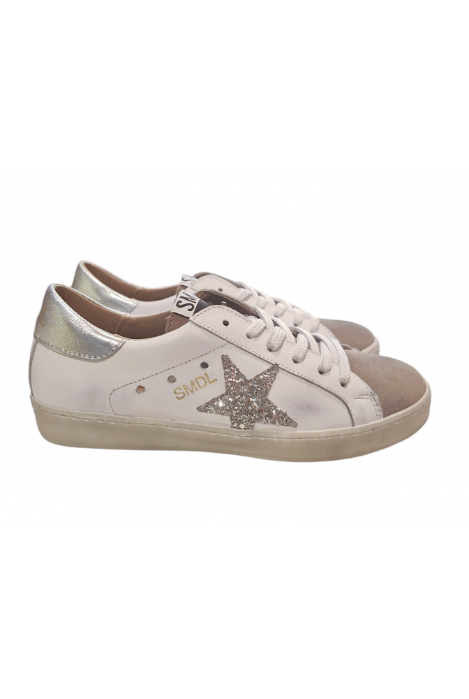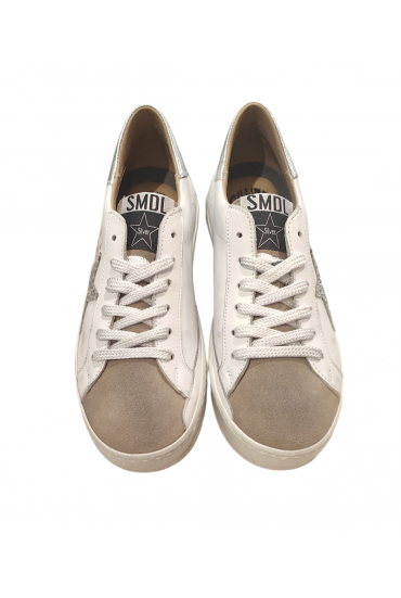 Auténtica deportiva Silver Moose fabricada en piel blanco con detalles de glitter plata. Puntera de ante visón. Forro antibacterias total absorción, transpirable 100% y antialérgico. Plantilla acolchada.