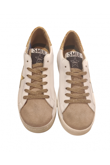 Auténtica deportiva Silver Moose fabricada en piel blanco con detalles de glitter plata. Puntera de ante visón. Forro antibacterias total absorción, transpirable 100% y antialérgico. Plantilla acolchada.