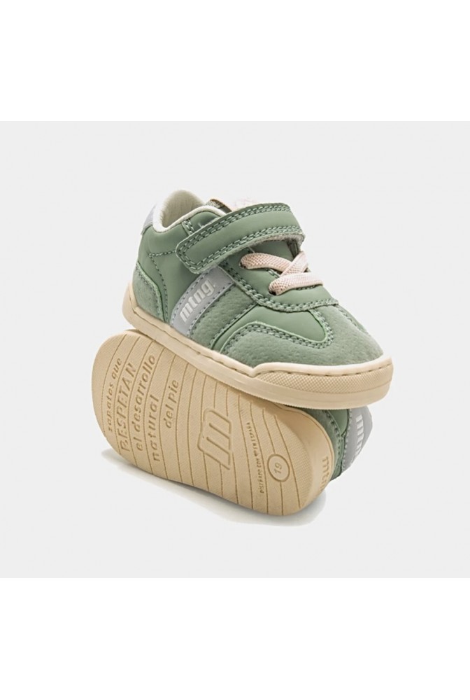 Con certificado VEGANO sellado por INESCOP, el cual garantiza que la naturaleza química principal del material no se corresponde con fibras de origen animal. Diseñada y desarrollada especialmente en colaboración con el Dr. Juanjo López, traumatólogo deportivo e infantil, para respetar el desarrollo natural del pie de los niños.