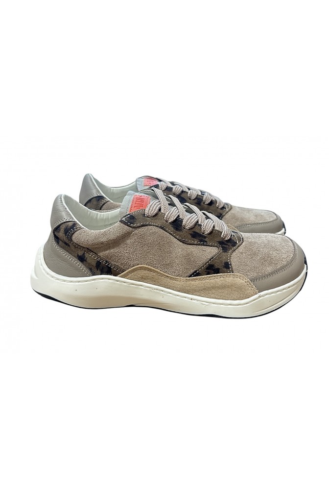 Deportivas de color visón para mujer de la marca Andanines colección barefoot, de estilo casual. Fabricada en piel y serraje, con detalles print que aportan un contraste cálido y distintivo. Suela super flexible que resalta su diseño moderno, ideal para looks más casual.