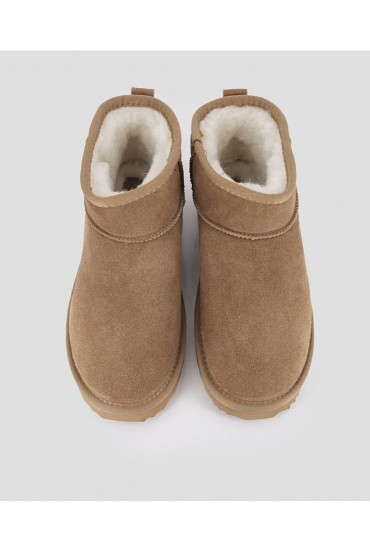 Botines estilo australiano en piel de serraje color camel, con piso plano de 2 cm para máxima comodidad. Caña baja de 9 cm sin cierre, facilitando un calce fácil y natural. Forro interior y plantilla sintética. Perfectos para un look casual y versátil, ideales para el día a día.
